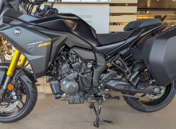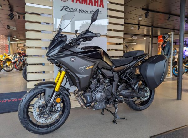 BRAND NEW Yamaha Tracer 7GT. Finished in Tech Black. £10,104 on the road including Yamaha 36 months warranty and roadside assistance PLUS : UK MAINLAND DELIVERY IS FREE! (Please note: NO ADDITIONAL SERVICE /ADMIN CHARGES. The price you see is the price you pay! ) – The ultimate CP2 sport touring experience whether it’s riding the long way home after work or embarking on a cross-continent trip. With exclusive GT features including hard side cases, taller screen, heated grips and powered by a thrilling 690cc engine, the Tracer 7 GT is ready to tour. Part-Exchange and finance/PCP available, please ask for details. Call Hunts Motorcycles on 0161-432 1303.