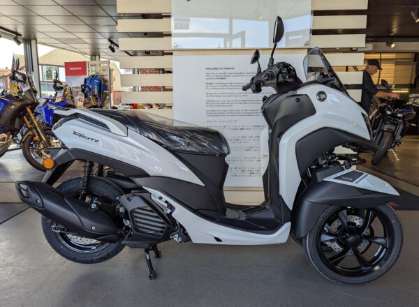 NEW 2025 MY Yamaha Tricity 125. Milky White. The Tricity 125 3-wheel scooter is learner licence friendly and inspires a strong feeling of stability and riding confidence, making commuting simple, easy and fun. £4,801 on the road including 36 months Yamaha warranty plus FREE mainland UK delivery (Please note: NO ADDITIONAL SERVICE /ADMIN CHARGES. The price you see is the price you pay!) – Part-Exchange and finance/PCP available, please ask for details. Call Hunts Motorcycles on 0161-432 1303.