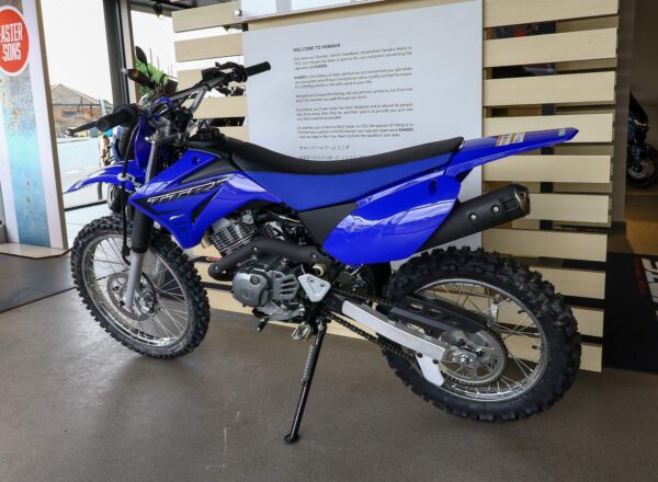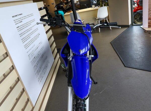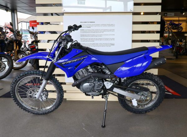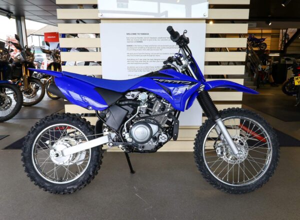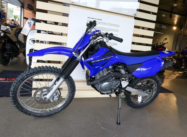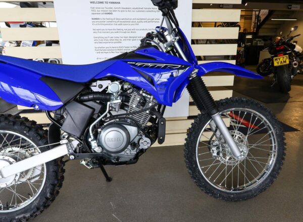 IN STOCK NOW! – New Yamaha TT-R125 fun bike. Icon Blue. £3,699 – PLUS : UK MAINLAND DELIVERY IS FREE! (Please note: NO ADDITIONAL SERVICE /ADMIN CHARGES. The price you see is the price you pay!). At the heart of this durable off roader there’s a compact air-cooled 125cc 4-stroke engine delivering plenty of smooth and controllable power. An electric start makes it easy to get moving, and the 5-speed gearbox allows you to get maximum enjoyment from the TT-R125. PLUS : Part-Ex and finance available, please ask for details. Call Hunts Motorcycles on 0161-432 1303.