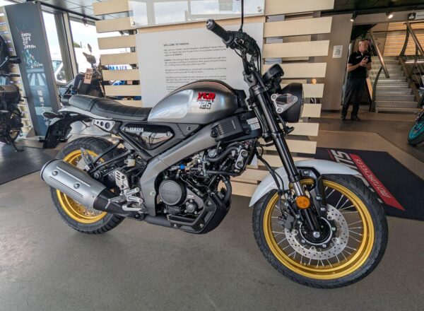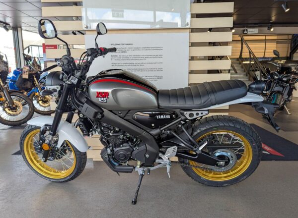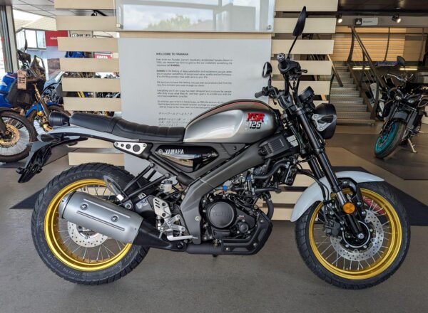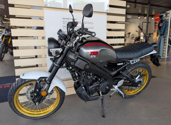IN STOCK NOW – BRAND NEW 2025 Yamaha XSR 125 Legacy. Finished in Legend Silver. Learner licence legal 125. The newest bike in Yamaha’s Sport Heritage line up, the XSR125 Legacy comes with a premium specification that includes LED lights and full LCD instruments just like the larger capacity XSR700 and XSR900 plus lightweight spoked wheels with gold rims, dedicated colours and graphics as well as a lightweight Deltabox frame and USD front forks that give a confident and comfortable ride. £5,351 on the road including Yamaha 36 month warranty PLUS: FREE MAINLAND UK DELIVERY (No Additional Charges or admin fees!) – Part-Ex and finance/PCP available, please ask for details. Call Hunts Motorcycles on 0161-432 1303.