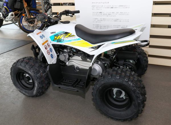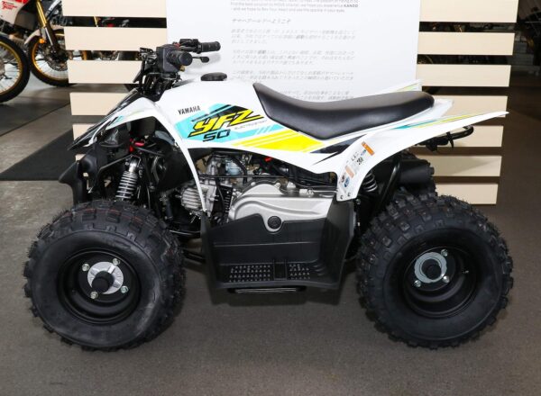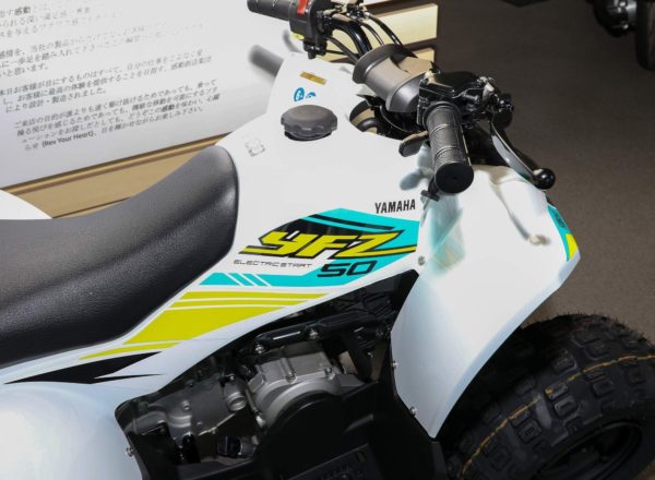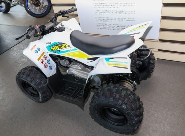 IN STOCK NOW: NEW Yamaha YFZ50 kids ATV/Quad. White. £3,050 – With its compact body, simple controls and automatic 49cc engine, the YFZ50 is the perfect way to start out. Built for children between 6 and 9, this mini ATV is ready to provide hours of family fun. Safety comes first, and the YFZ50 has a range of features that give parents a high degree of control. Speed can be limited by the throttle screw and rev limiter switch – and a lanyard attached to a tether switch can cut the engine instantly. PLUS : Part-Ex and finance available, please ask for details. Call Hunts Motorcycles on 0161-432 1303.